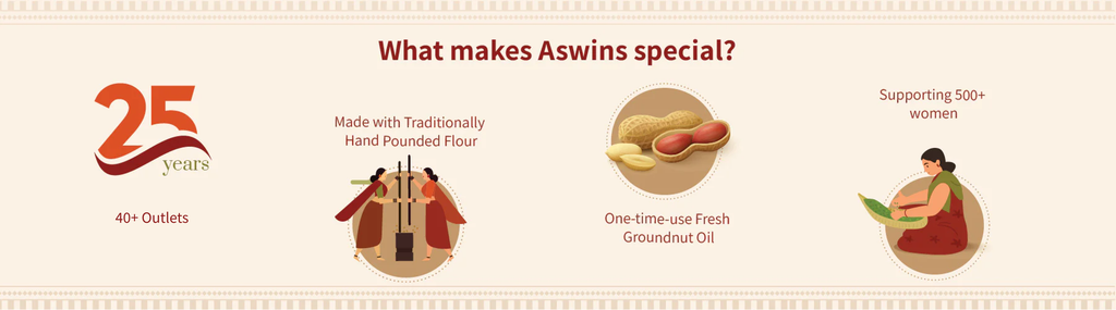 As a testament to our rich and varied culinary heritage, we at Aswins Sweets are committed to crafting the finest and most treasured healthy Indian snacks. We believe that life's every little glee should be celebrated every day with a little bit of indulgence. Our exclusive range of delicacies is made with the purest, locally sourced ingredients and authentic age-old recipes that meet the highest standards of safety.