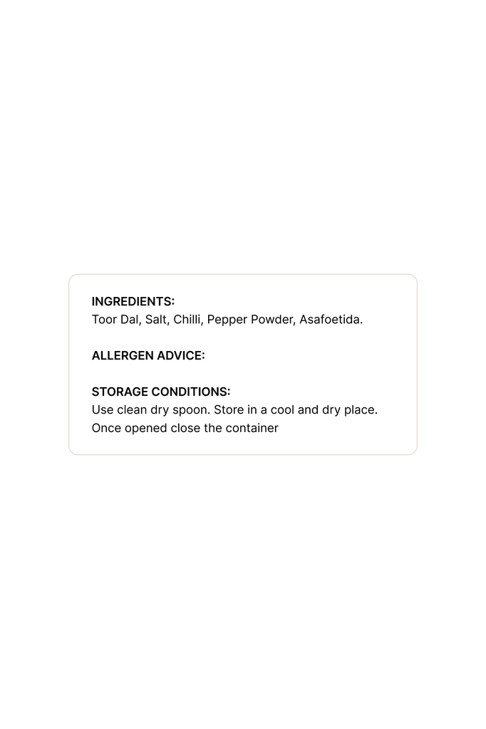 Made from roasted lentils and aromatic spices, our Paruppu Podi is the perfect accompaniment to hot rice and ghee.