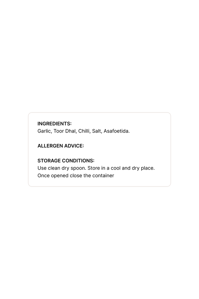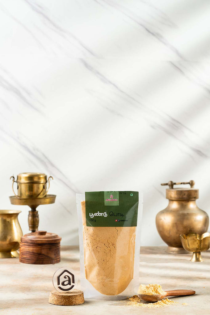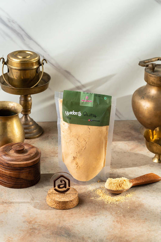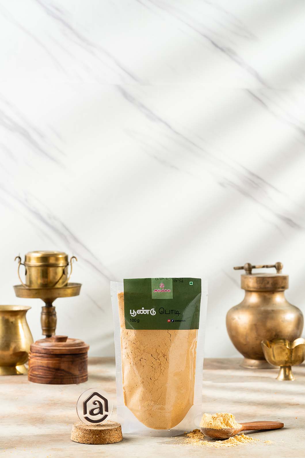 Our poondu podi is aromatic, perfectly spiced and is a must-have staple to pair with your idly, dosa and steamed rice.