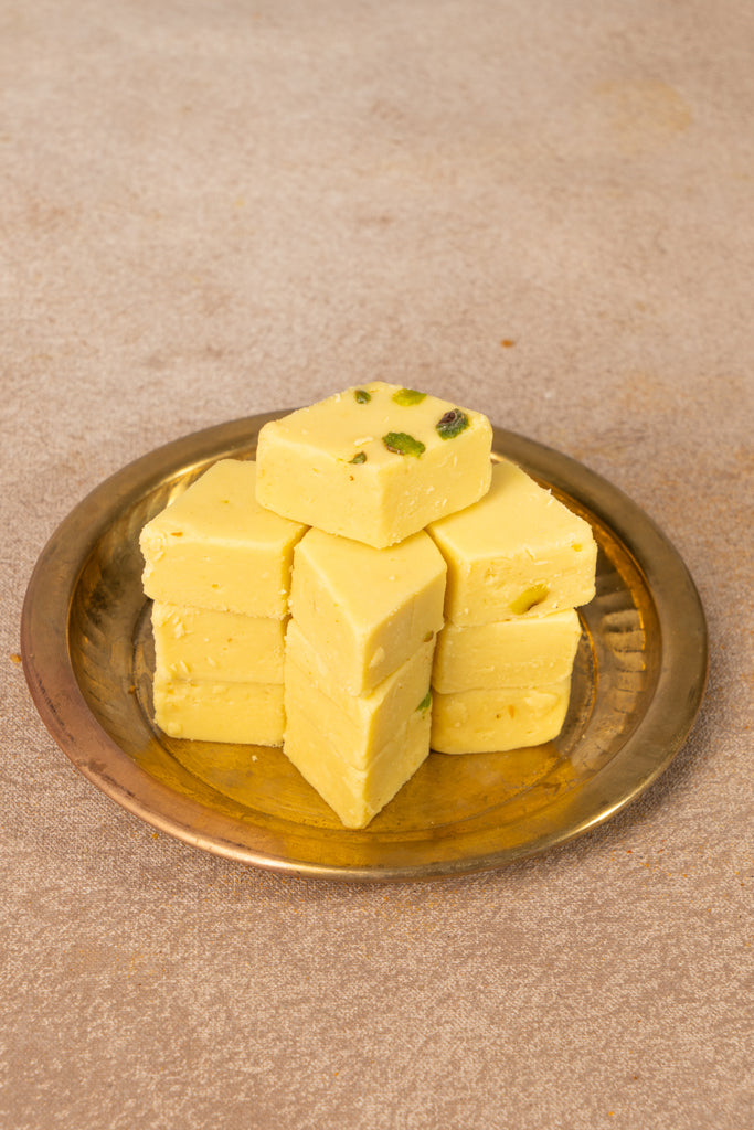 Melt-in-the-mouth and rich with ghee, our Vanilla Burfi is a delicate fusion of creamy sweetness and aromatic vanilla, making every bite pure indulgence.
