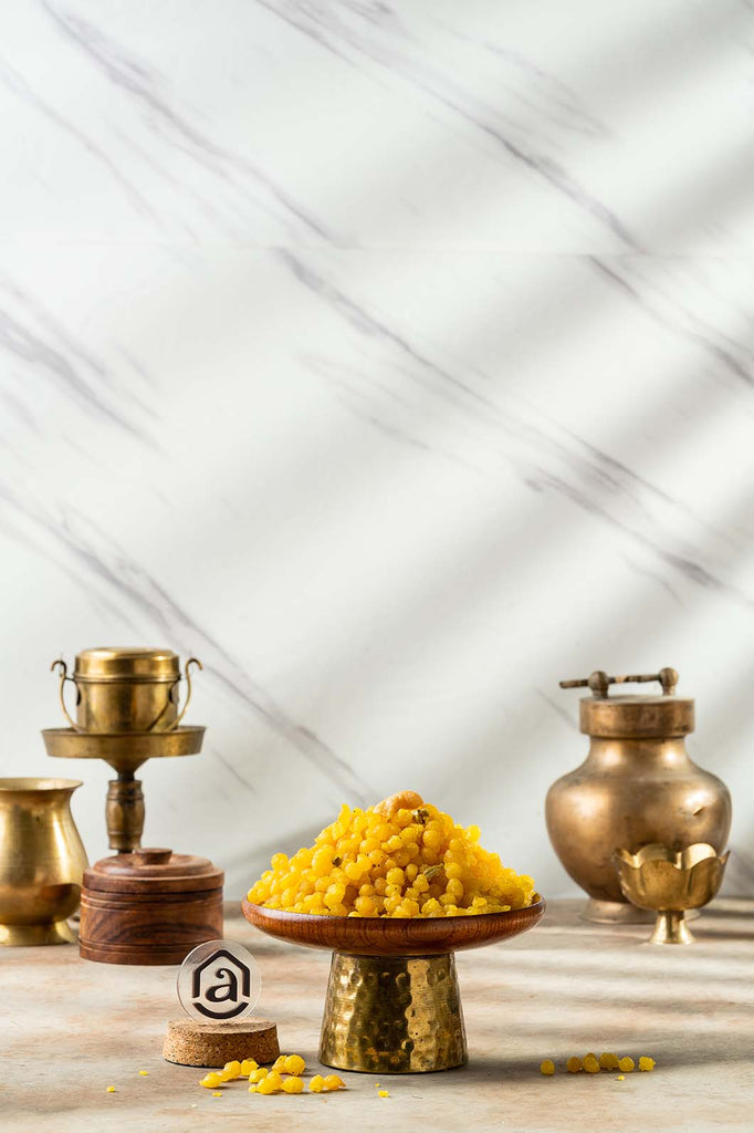 Indulgent and delicious, our Boondi is the perfect blend of sweetness with a subtle crisp. Made using three simple ingredients - gram flour, sugar and ghee; our Boondi can be leisurely enjoyed by the bowlful.