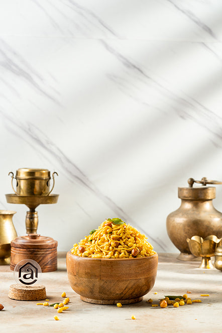 Aswins Mixture is a well known South Indian delicacy that is tasty, crunchy and lip-smacking delicious. As the name suggests its a mix of fried peanuts, chana dal, kara sev and kara boondhi flavoured with various spices.