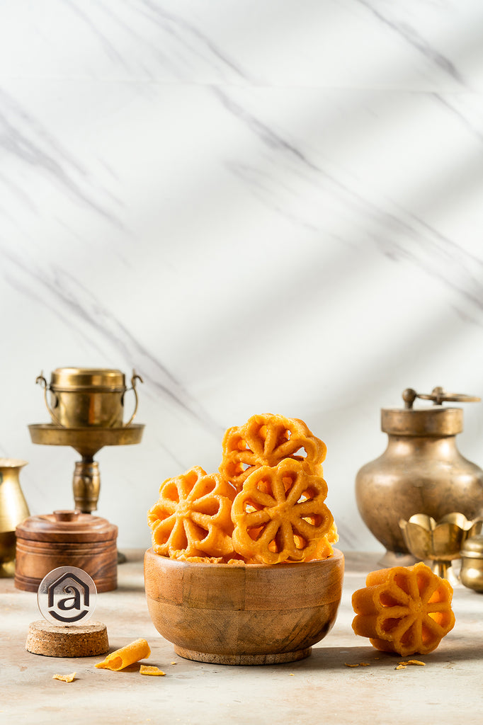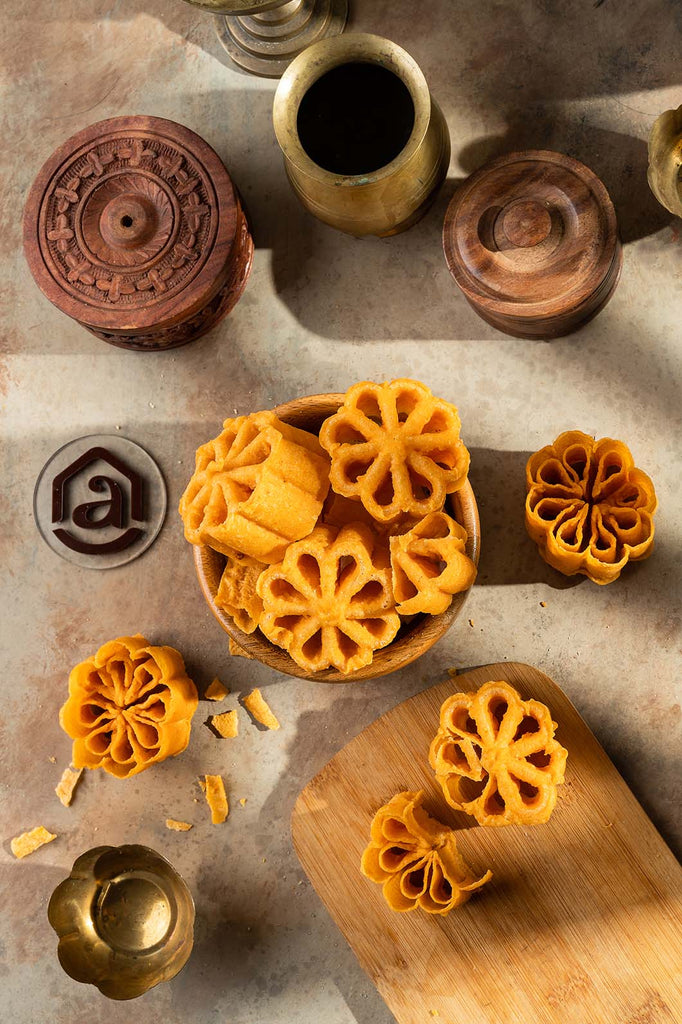 Achumurukku or Achappam is a light and crispy rose-shaped cookie made with rice flour.