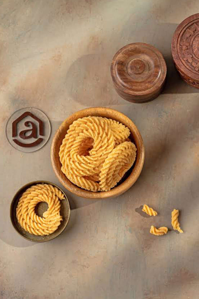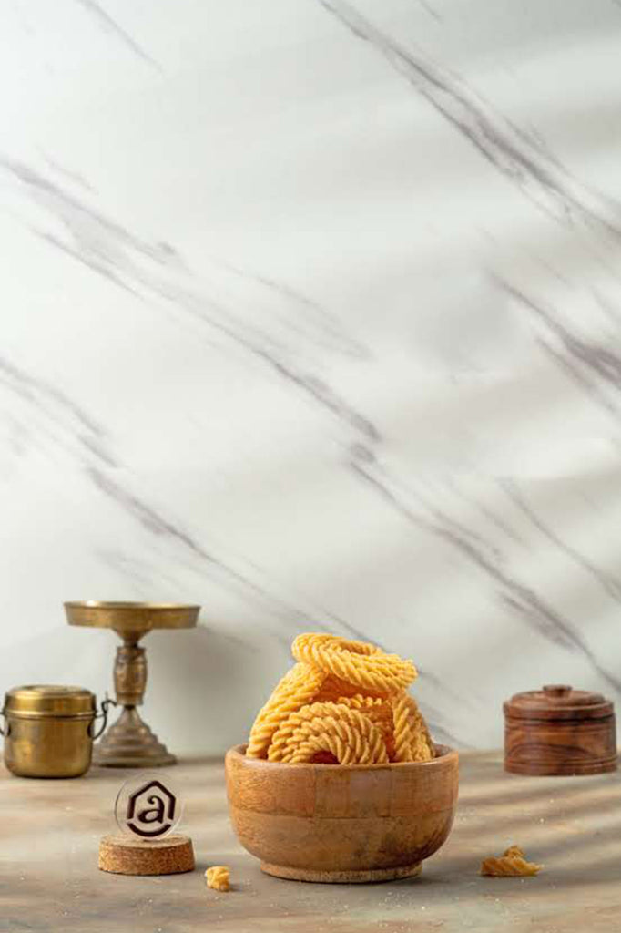 Made with a blend of urad dhal and butter with a distinctive garlic flavour, our Poondu Murukku makes a crunchy and flavourful evening snack.